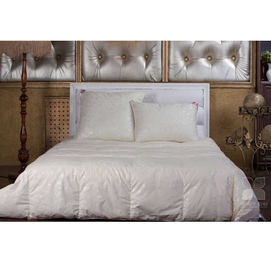 Чехол одеяла выполнен из тика, 100% хлопок. Наполнено оно уникальной смесью - натуральным пухом второй категории (80%) и синтетическим полиэфирным волокном (20%). Чехол двусторонний — с одной стороны однотонный цвета шампань, а с другой декорирован рисунком.